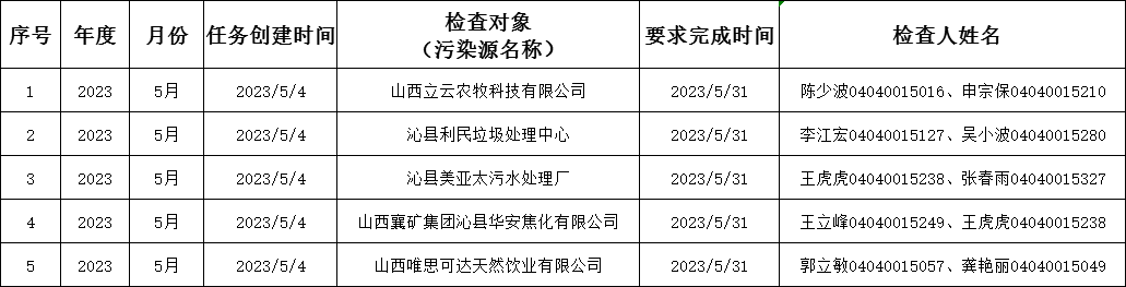 标题长治市生态环境局沁县分局2023年5月双随机检查任务