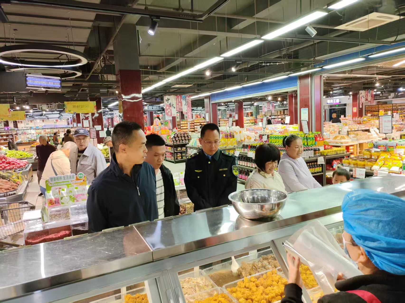 9月24日,市局药品安全总监、四级调研员田国锋同志带队来沁开展节前市场检查工作,沁县市场监督管理局副局长王伟及相关执法人员全程陪同检查,在沁县惠美多超市,执法人员仔细查看月饼、酒水饮料等食品安全状况及市场价格情况,通过现场询问、查阅资料、执法检查等形式切实维护食品市场秩序。