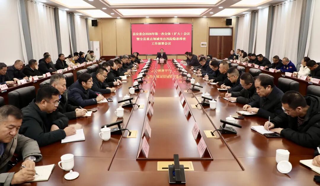 1月17日,县安委会2026年第一次全体(扩大)会议暨全县重点领域突出风险隐患排查工作部署会议召开。县委副书记、县长李俊杰主持并讲话。县委常委、副县长连娟、李成君,副县长、公安局局长张军红,副县长王彦军出席会议。