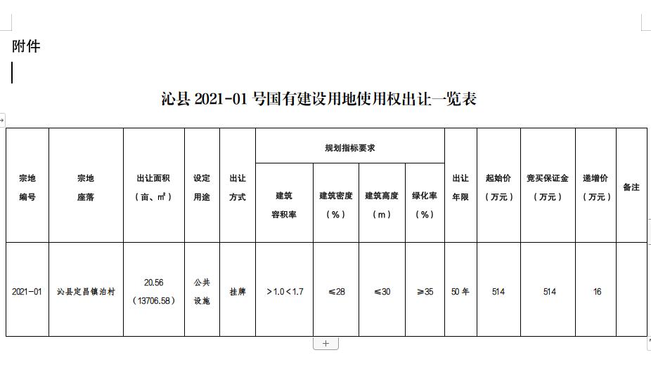 附件:沁县2021-01号国有建设用地使用权出让一览表