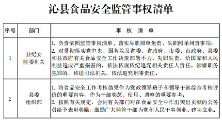 | 标题:沁县人民政府办公室关于印发沁县食品安全监管事权清单的通知 | |