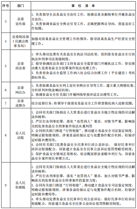根据《长治市人民政府办公室关于印发长治市食品安全监管事权清单的通知》(长政办发〔2021〕10号),经县人民政府同意,制定《沁县食品安全监管事权清单》。请认真对照清单内容,落实对主管行业领域食品安全工作的管理责任,加快完善食品安全治理的制度和措施,实现全链条、全流程监管。