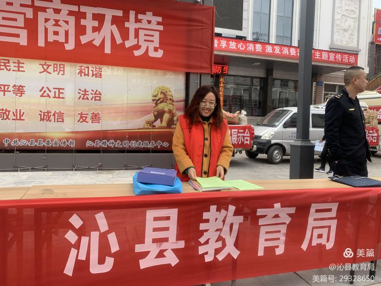 3月15日,沁县教育局在电影院门前开展“3·15消费者权益日”宣传活动。