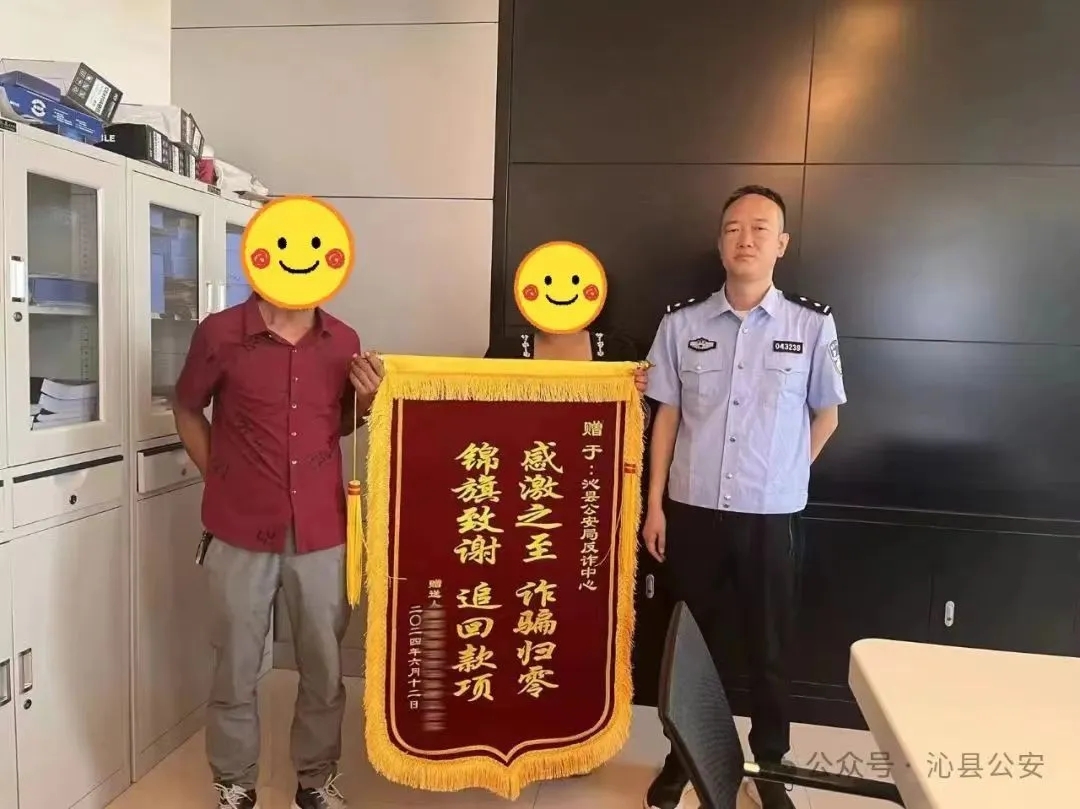 “谢谢你们帮我们找回血汗钱,太感谢你们了……”近日,马某携同爱人特意赶到沁县公安局,将一面印有“感激之至 诈骗归零 锦旗致谢 追回款项”的锦旗送到反诈民警手中,以表达对民警帮助其追回损失的感激之情。