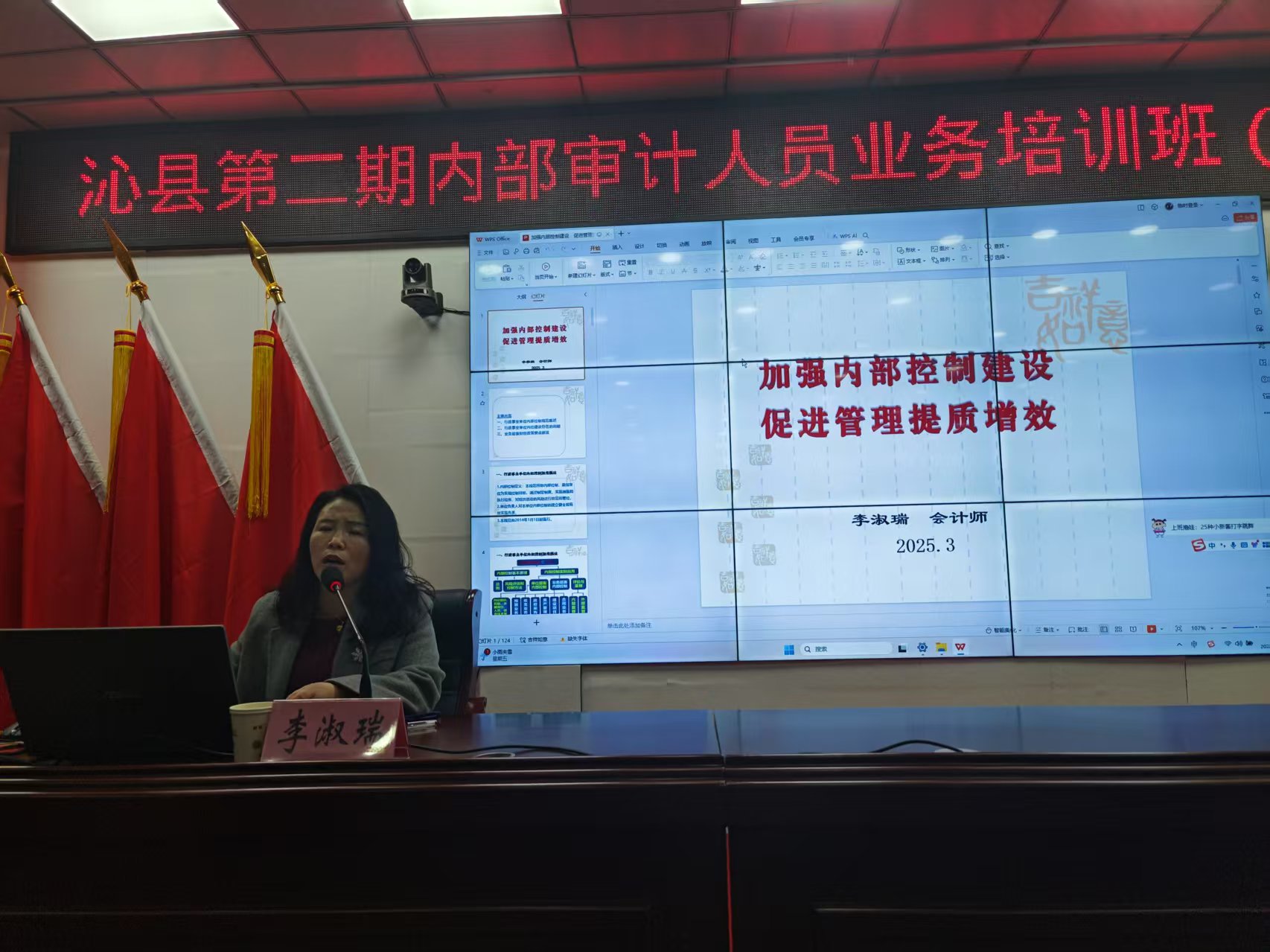 县财政局李淑瑞讲授《行政事业单位内部控制规范(试行)》。