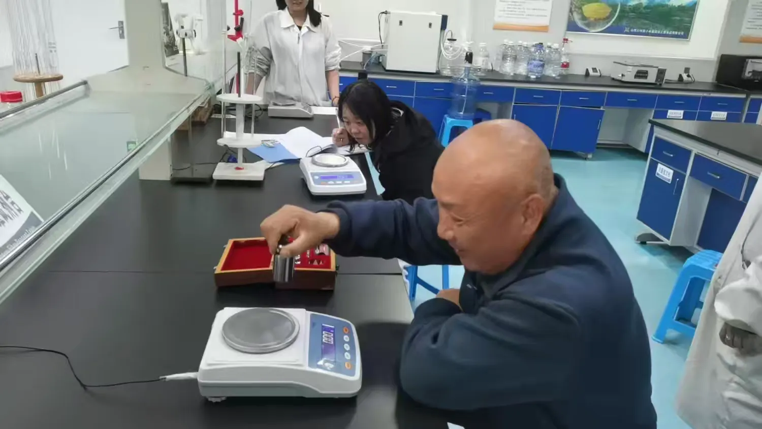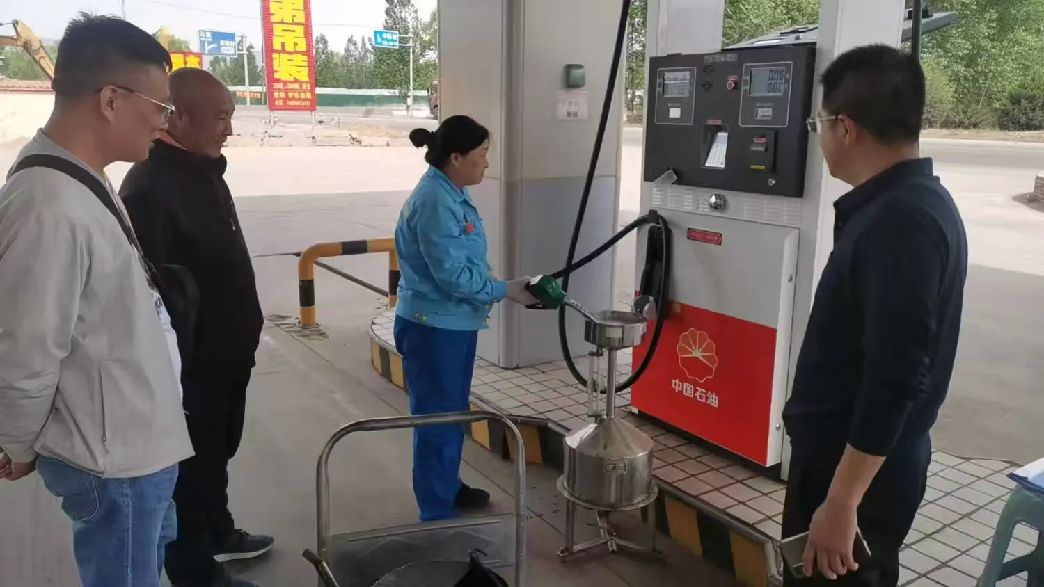 培训中,中心专业技术人员通过“理论知识+现场操作”相结合的方式,深入一线详细讲解燃油加油机、电子天平、数字指示秤的使用原理、检定过程、精密度和量值传递的准确度等知识,同时,中心工作人员在老同志的带领下依次上手操作,并就日常使用中遇到的问题逐一进行解答。