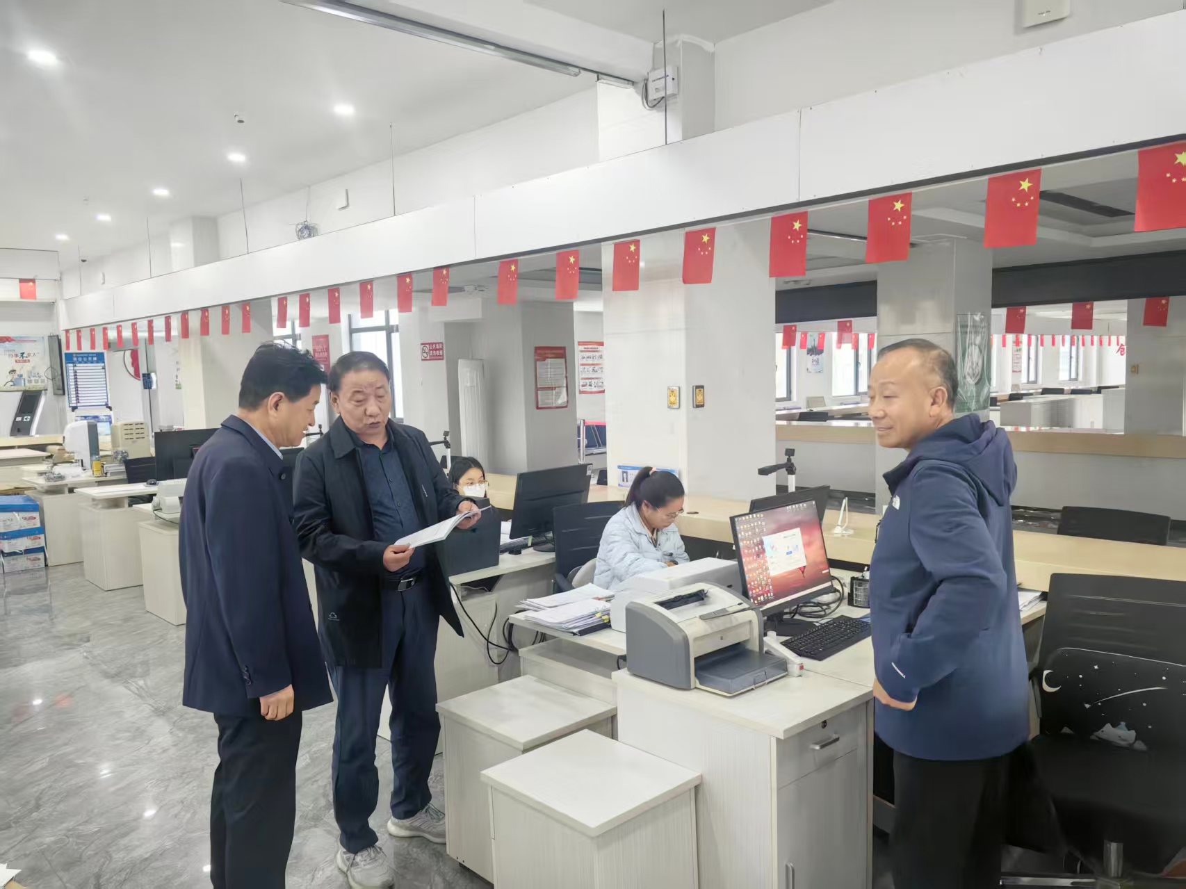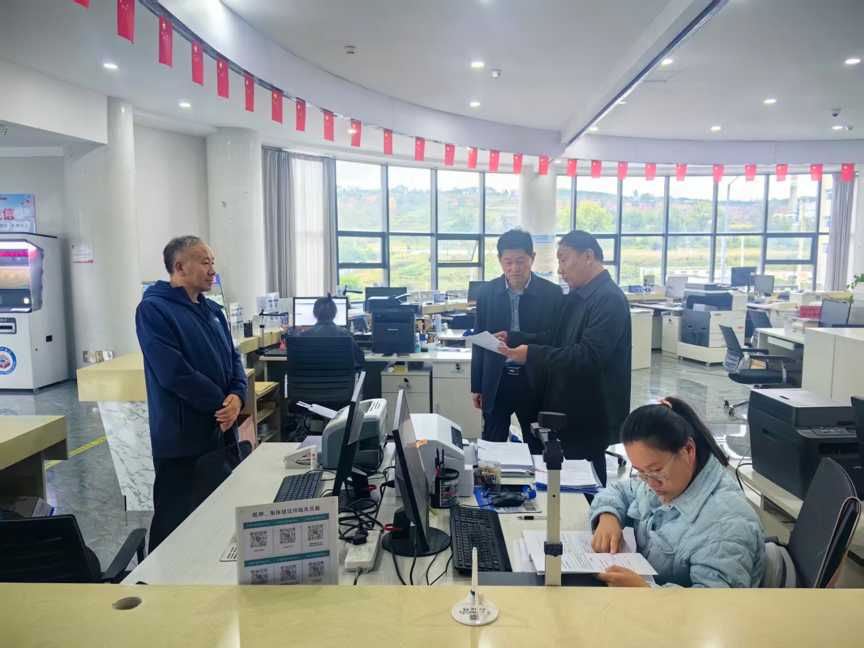 9月30日上午,长治市规划和自然资源局李宏伟调研员、郭文林科长在沁县不动产登记中心督促指导化解不动产“登记难”工作。