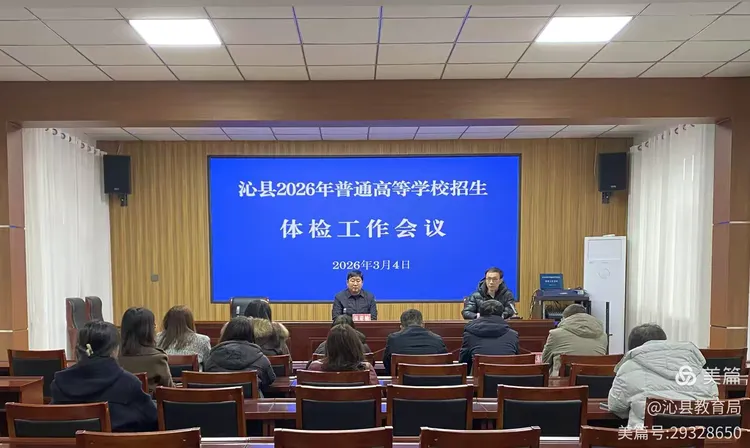 会议安排部署沁县2026年普通高校招生体检工作,强调要提高政治站位,充分认识招生体检工作重要性;严格规范程序,确保体检结果公平正义;强化组织保障,全力筑牢安全服务防线,确保招生体检工作平稳有序推进。