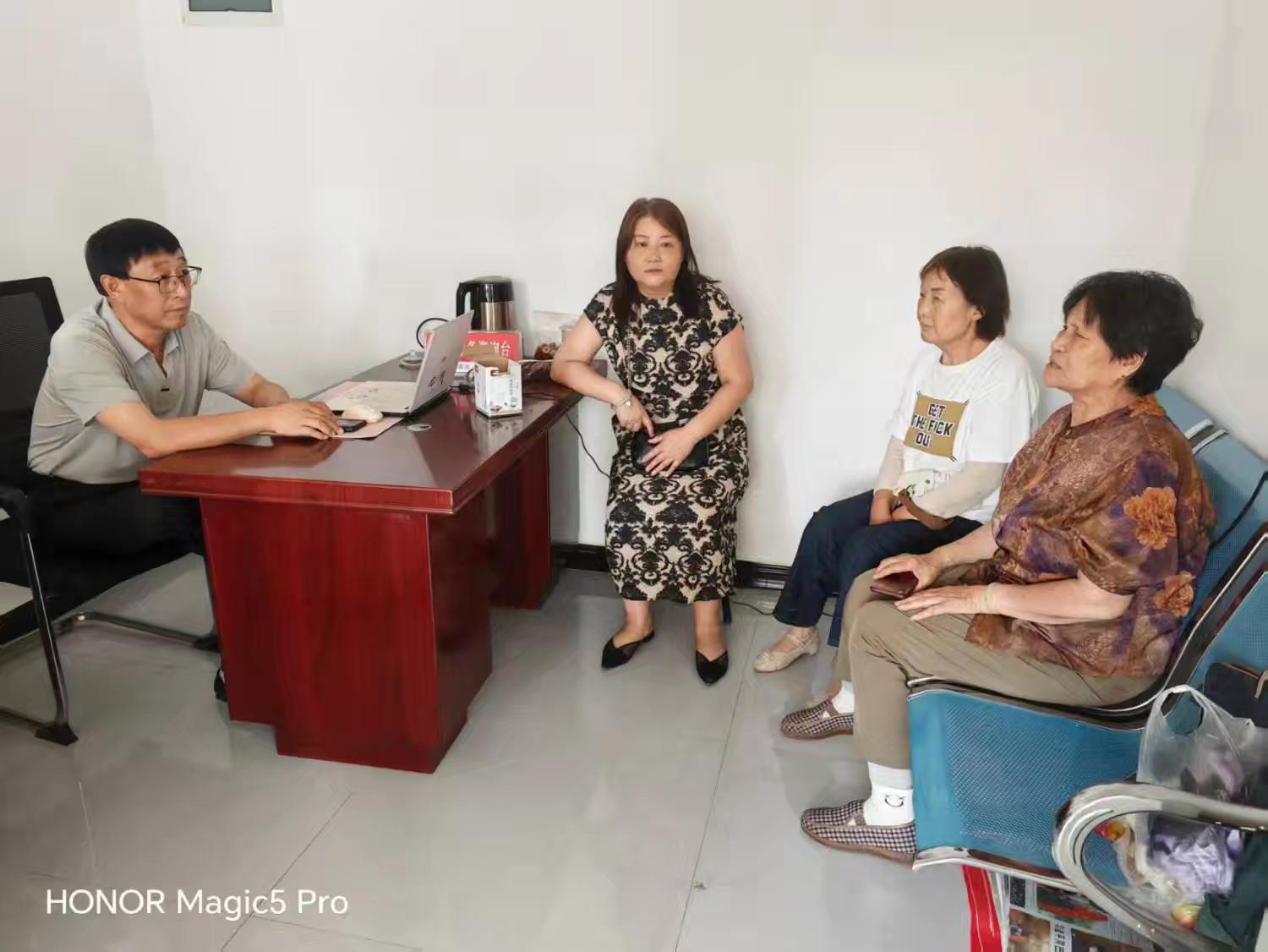 第五征拆组 镇宣传委员张婷在长胜村协商失地养老保险相关事宜