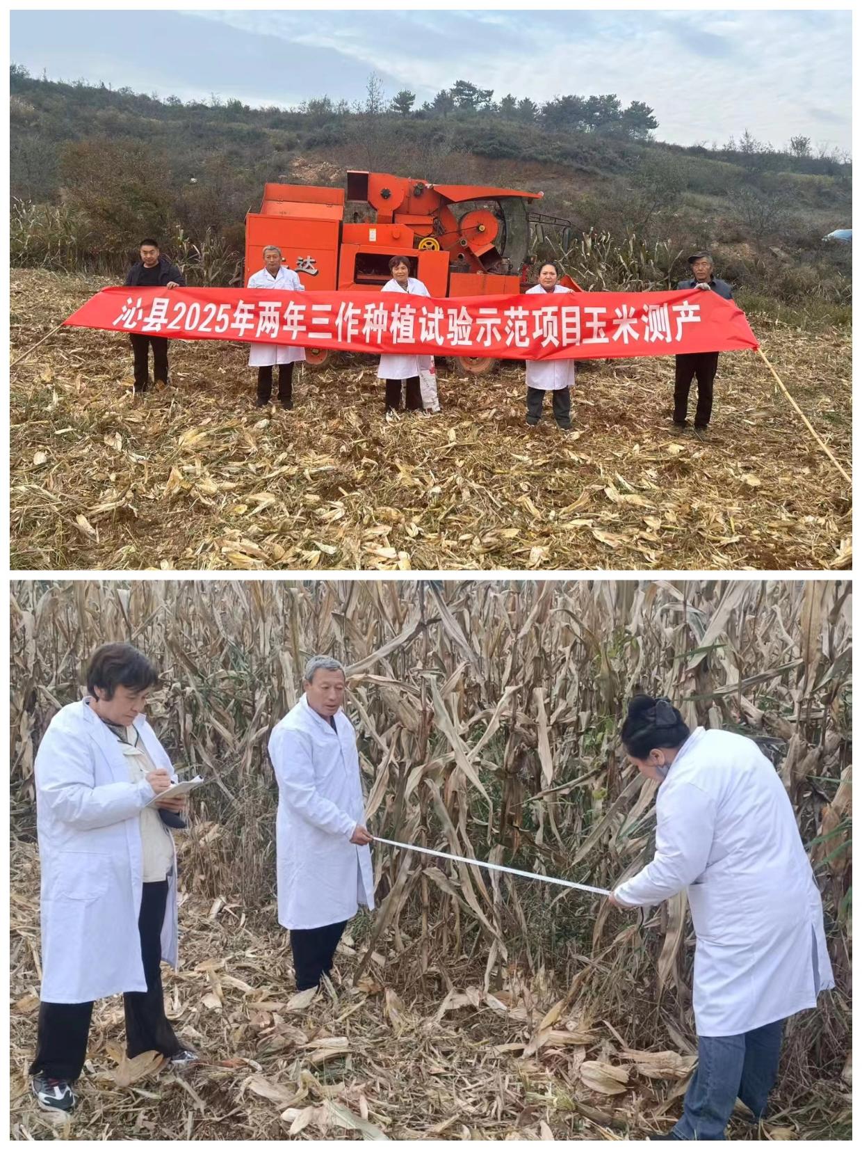 县农业农村局种植科技术人员在待贤村开展“沁县2025年两年三作种植试验示范项目玉米测产”工作,并在现场选取代表性地块,精准测算玉米亩产量。